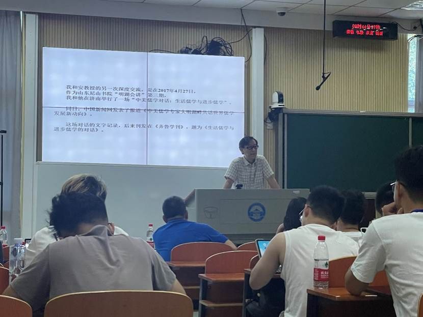 本网讯(通讯员 李忠泽)8月3日上午8:30,山东大学的黄玉顺教授做了题为“论儒学的‘进步’与‘自由’观念——‘生活儒学’与‘进步儒学’再比较”的主题报告。本场讲座由轻小说 副院长李勇教授主持。