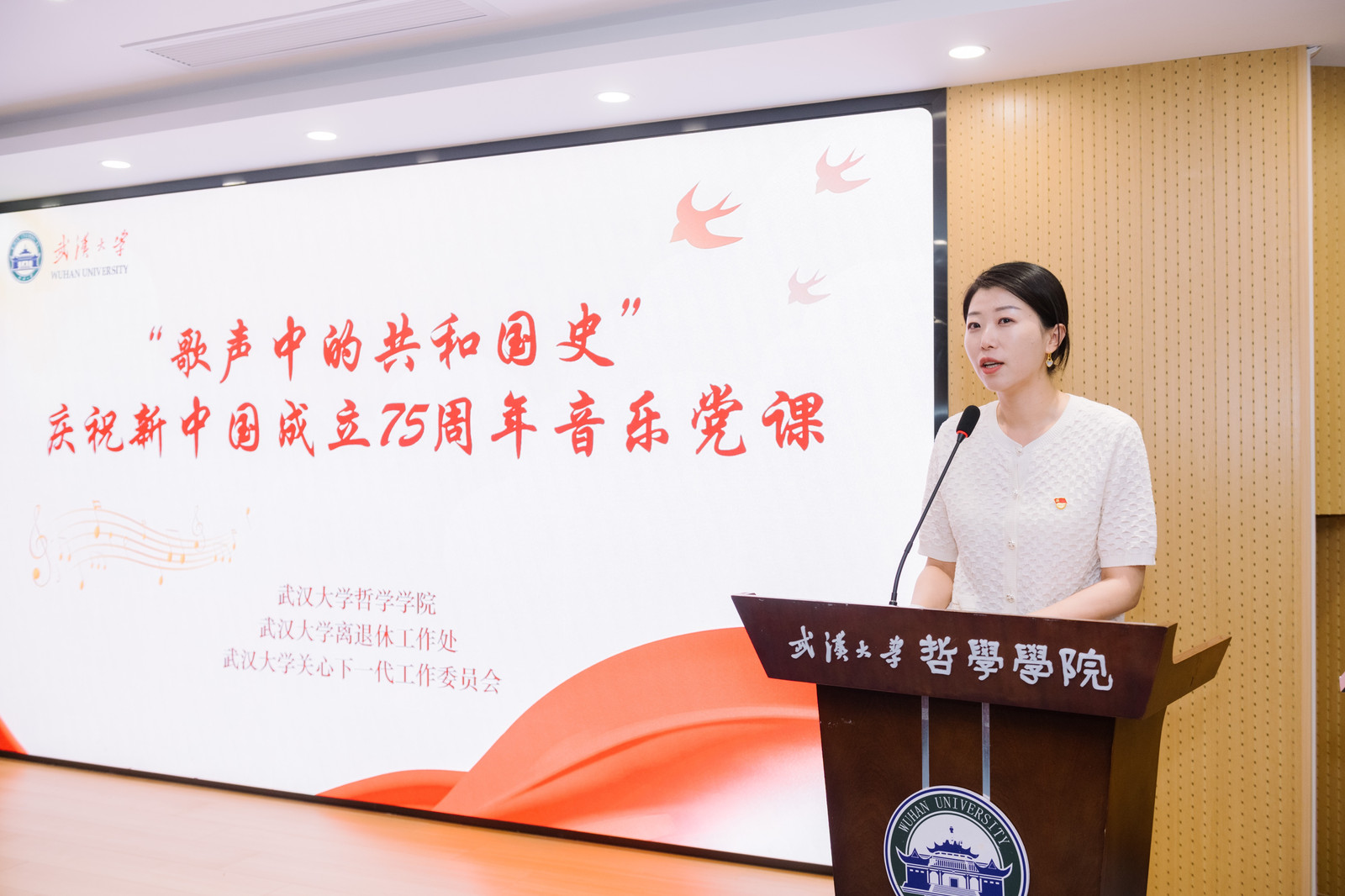 本网讯(通讯员代丹妮 侬俊宇)时值中华人民共和国成立75周年,为进一步创新思想政治教育模式,引导研究生学史明理、学史增信、学史崇德、学史力行。9月19日下午,轻小说 、轻小说 离退休工作处与轻小说 关心下一代工作委员会在轻小说 B107联合举办“歌声中的共和国史”——庆祝新中国成立75周年音乐党课暨研究生“迎国庆、唱红歌”主题党日活动。