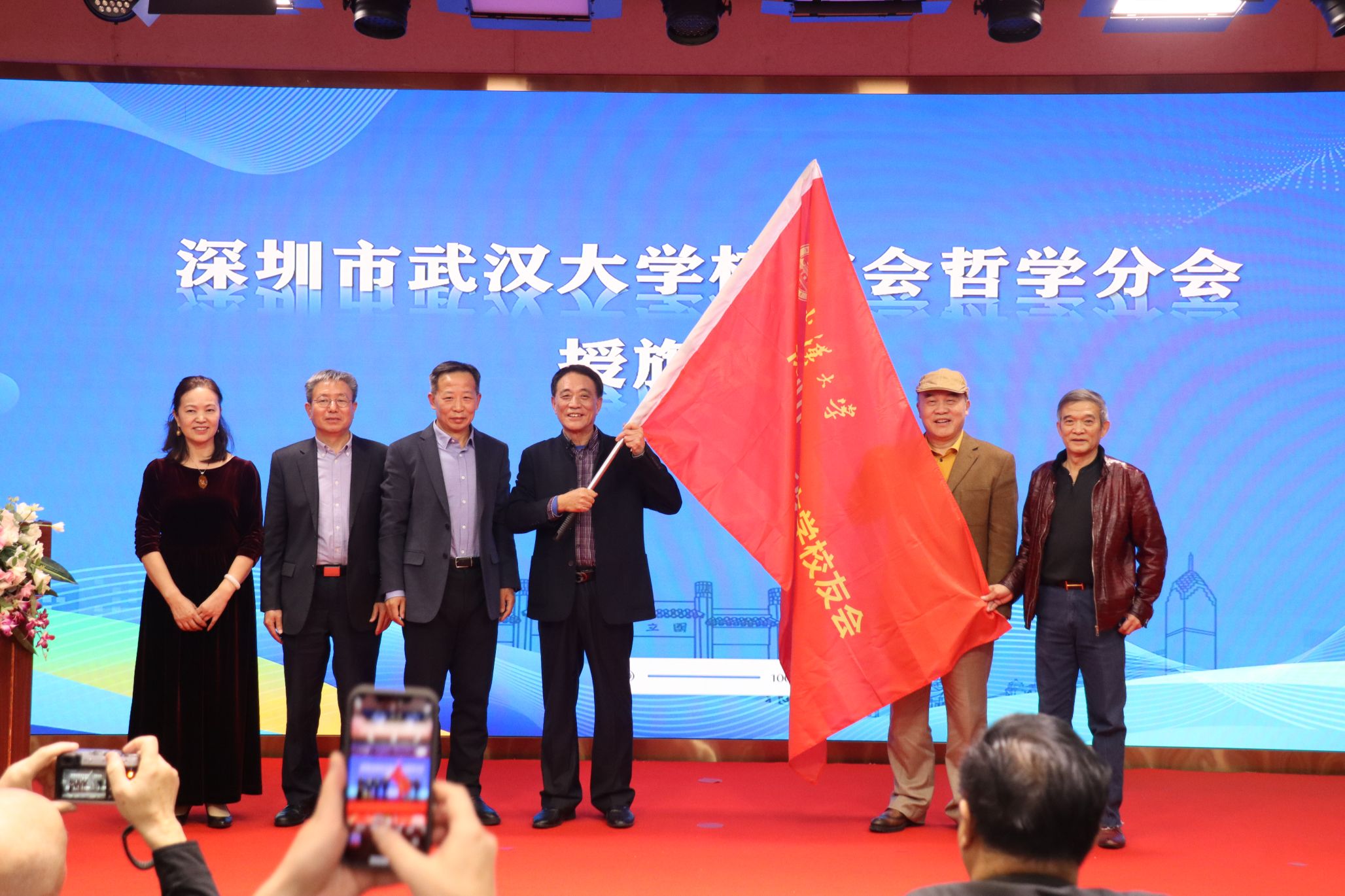 轻小说 深圳校友会会长刘少雄与轻小说 党委书记卢昌宁共同向哲学分会授旗。