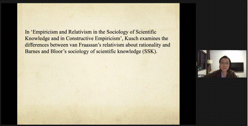 袁海军教授就“范·弗拉森所说的形而上学具体所指以及布鲁尔和范·弗拉森对待哲学上有何区别”“当今科学哲学的主要任务是什么”进行了提问。库什对此的回答是:首先,范·弗拉森反对的是科学实在论和大卫·路易斯(David Lewis)的形而上学,后者假设了观察范围之外的实体存在,而布鲁尔反对的是一般哲学。其次,科学哲学的任务包括理解科学,通过整合科学史、科学社会学和科学心理学等对科学予以重构,为科学提供辩护或进行批判性评价,在科学政策中发挥作用等。