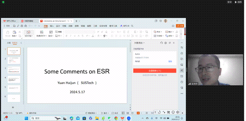 在评议环节,袁海军总结了讲座内容并提出三个问题:一是如果因果律可被归纳确证,则应如何看待归纳问题;二是脱燃素气是否可以满足客观性的四个要求,如果是,其与非实体论断应该如何解释;三是ESR是否承诺了某种真之符合论,如果是,那么ESR如何回应库恩的反对论证?吉恩斯对此做出回应:首先,归纳问题没有满意的解决方案,关于它的辩护是实用性的;其次,“脱燃素气”由其意义来说没有指称,但就理论选择来说,“脱燃素气”指称氧气;最后,他区分了真的符合论观点和真的符合理论,认为我们可以相信符合论观点但无法给出满意的符合理论。库恩论证说我们无法在认识上通达语言和信念之外的东西,但吉恩斯认为当信念和实在相冲突时,错误经验会使我们意识到自身之外的存在,由此否定唯心主义认识论。