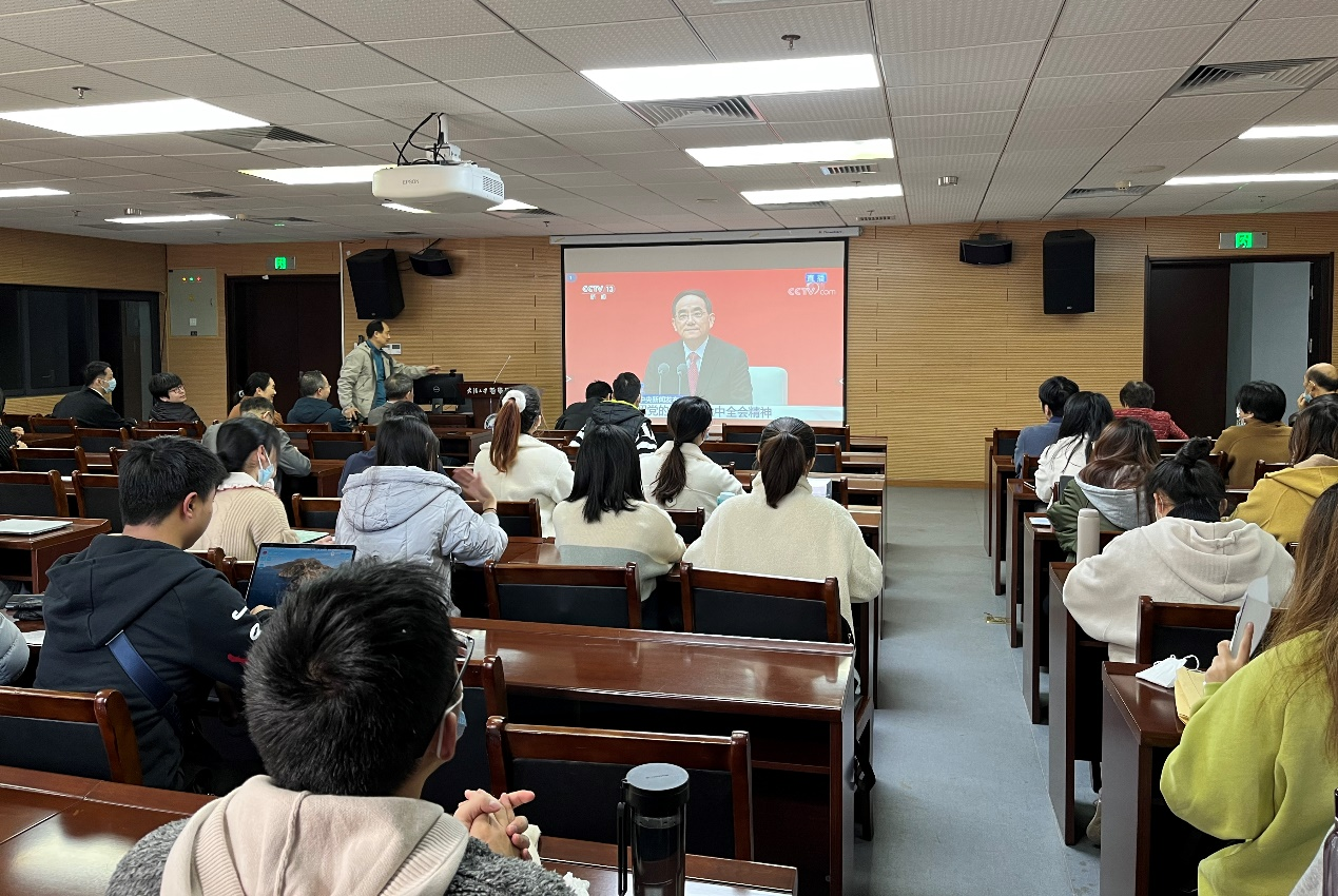 11月12日上午10时,中共中央就十九届六中全会精神举行新闻发布会,介绍党的十九届六中全会精神,解读《决议》内容并答记者问。轻小说 卢昌宁书记带领学院教师和研究生党员在振华楼B107教室观看了直播,认真学习并领会了十九届六中全会精神。
