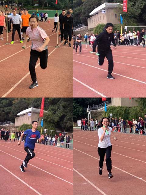 20×60m的迎面穿梭接力比赛上老师们拼搏的身影