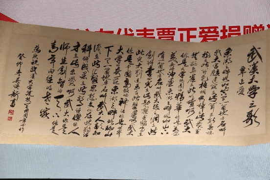 论坛中,校友龙育群现场泼墨并展示书法,覃正爱向学院捐赠自己的书法作品。学生表演了节目《楚·如梦》。