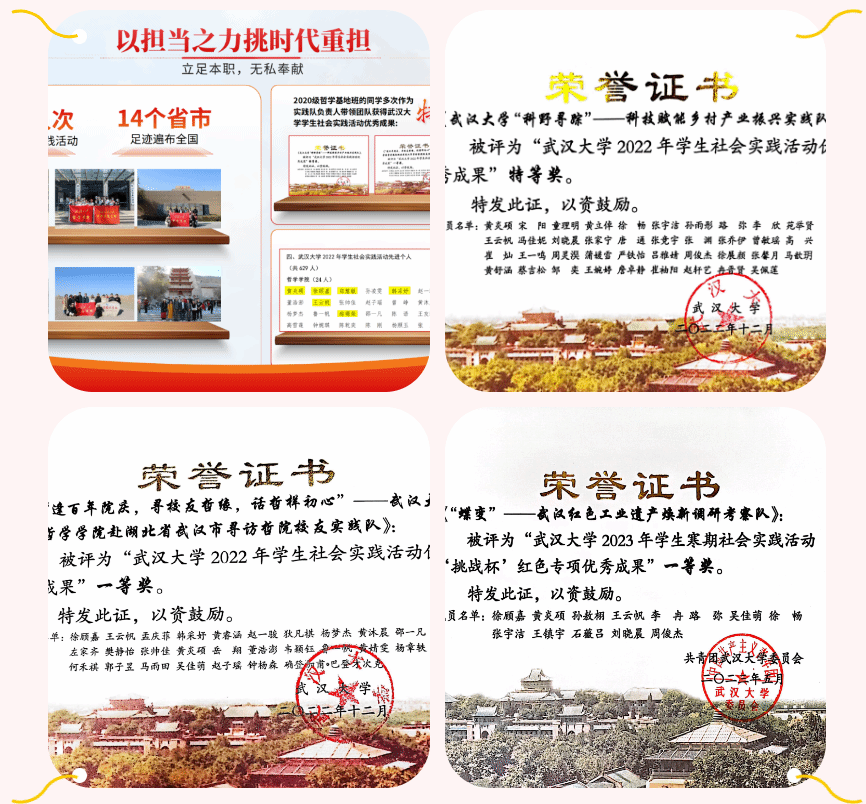 40余人次参与过社会实践活动,足迹遍布全国14个省市,多项实践成果获评轻小说 学生社会实践活动优秀成果特等奖、一等奖,6名同学获评轻小说 学生社会实践活动先进个人。
