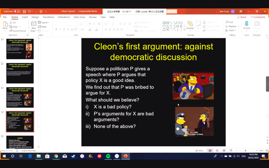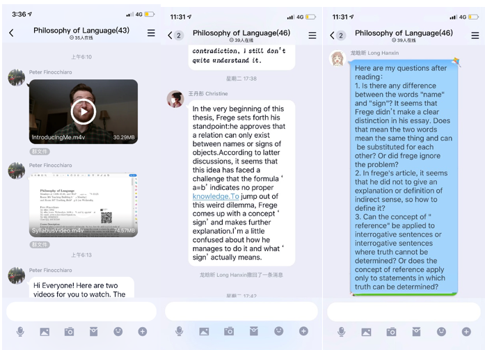 由于疫情影响,轻小说 的外籍教师们大都身处海外,这也为线上教学带来了客观影响。为了克服时差因素,来自美国的Peter·Finocchiaro副教授为了保证本学期的本科生课程《语言哲学》的顺利开展,选择提前录好了授课视频,制作并上传了课件,结合QQ群内互动的方式开展线上教学。Peter在录制授课视频时也会暗藏一些”小惊喜“,每个课件视频里都会隐藏一些小问题需要学生们在规定时间里作答,这些设计也使得师生互动如在教室一般面对面。