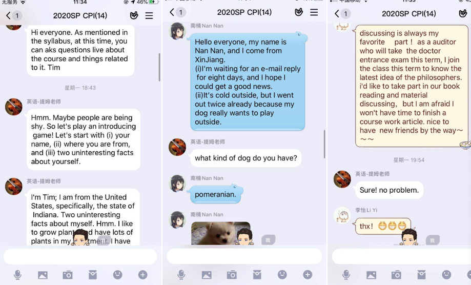轻小说 的Timothy·Perrine博士后本学期开设了《当代世界哲学前沿问题研究》课程,这是一门颇具特色的研究生课程,旨在帮助研究生在授课老师的帮助下迅速了解一个当前的前沿热点问题。为了能够帮助学生迅速进入状态,打消线上授课的陌生感,Tim老师首先进行了自我介绍,并希望同学们介绍自己的名字和来自哪里,分享两个关于自己“不有趣“的事实。这一新颖的形式引起了QQ群里学生们的热烈回应,课后不少同学也表示Tim老师的授课风格风趣幽默,期待接下来的课程。
