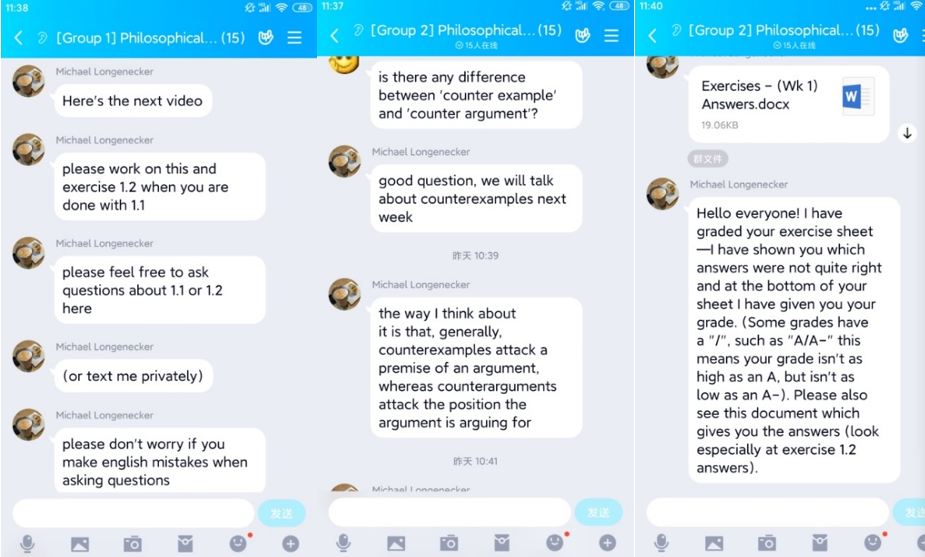 轻小说 的Michael·Longenecke博士后则是担任了《专业外语》(外国哲学、伦理学、科哲和宗教学方向)的教学工作。Michael老师每节课前会发布几个问题,问题大都是涉及到当天的课程内容,在课后要求学生们结合所学内容提交解答,Michael老师也会给出相应的批改,并且每周还有一次小测试。同学们都觉得这样的授课形式令自己收获颇多,更加专注地投入到学习中去。