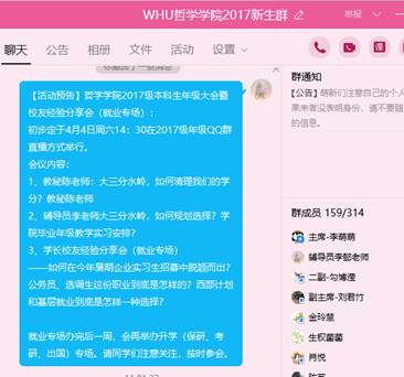教学学工协同确保线上教学顺利开展。学院教学秘书做了大量开课前的筹备工作,一对一协助每一位教师顺利网上开课。开学前联合辅导员组织各班推选出各课程课代表,协助老师做好答疑和考勤工作,课代表负责成立课程群,便于同学们上课和课程互动。之后面向所有课代表成立哲院网络上课交流群,专门对接学生,及时接收和了解学生对课堂的反馈,对于学生提出的问题及时作出回应和解决,确保了学院线上教学和学生学习效果。