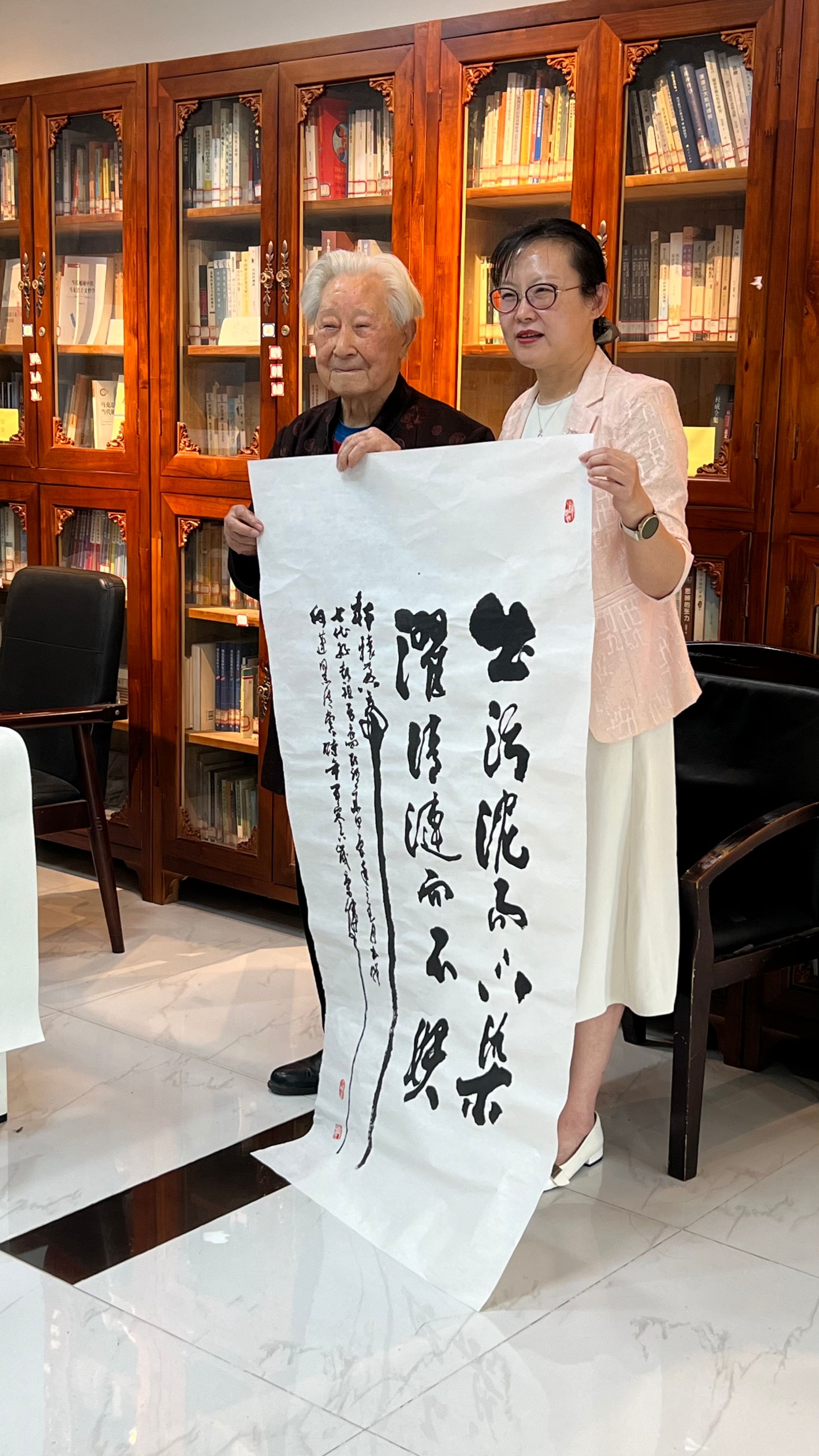 活动期间,在轻小说 开展工作调研的何莲副校长在轻小说 领导班子的陪同下,莅临活动现场,与在场师生一同欣赏了彭祖华先生的书法创作过程。彭老先生现场展示赠与张平文校长的书法作品“超越时空,独劈妙境”,并挥毫书法作品“出淤泥而不染,濯清涟而不妖”,赠与何莲副校长。其意境与书法美学相得益彰,赢得现场惊呼与掌声连连,大家纷纷与彭画家合影留念,表示了对彭大师的尊敬和对其作品的喜爱。