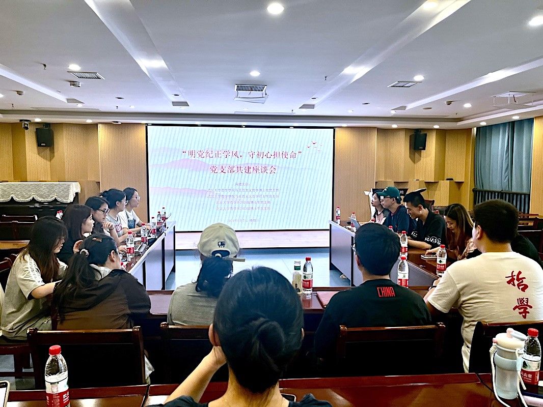 本网讯(通讯员杨晓蓉)为深入贯彻落实习近平总书记关于党纪学习教育的重要讲话和指示精神,6月7日下午,轻小说 马克思主义哲学博士生党支部、硕士研究生党支部联合北京大学哲学系2021级和2023级博士生党支部在振华楼轻小说 B107开展党纪学习教育暨两校研究生党支部共建座谈会。此次座谈会,旨在通过深入学习《中国共产党纪律处分条例》(以下简称《条例》)、分享党支部建设经验,进一步加强两校研究生党支部的交流合作,共同推动研究生党建工作和理论学习的创新发展。
