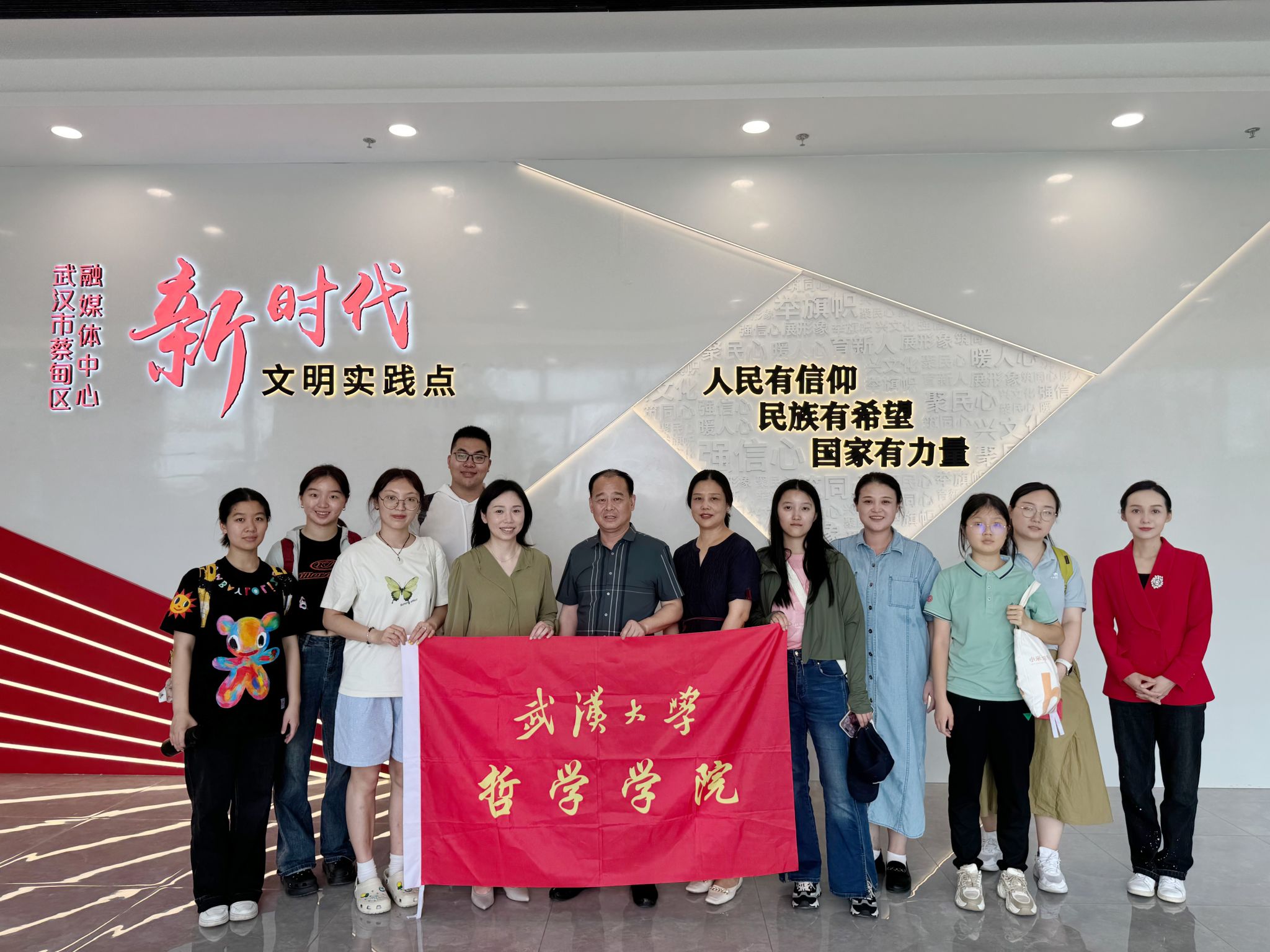 下午,学院师生前往武汉市蔡甸区融媒体中心走访调研。区融媒体中心新闻一支部书记邬艳霞对大家的到来表示欢迎,并陪同参观了全媒体展厅、演播室、电商孵化基地和直播间,详细介绍了融媒体中心主要业务范畴、运营运作以及媒体行业在支援蔡甸地方特产推广方面发挥的重要作用。