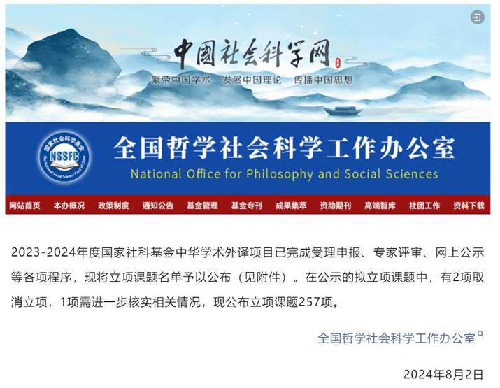 2023——2024年度国家社科基金中华学术外译项目立项名单