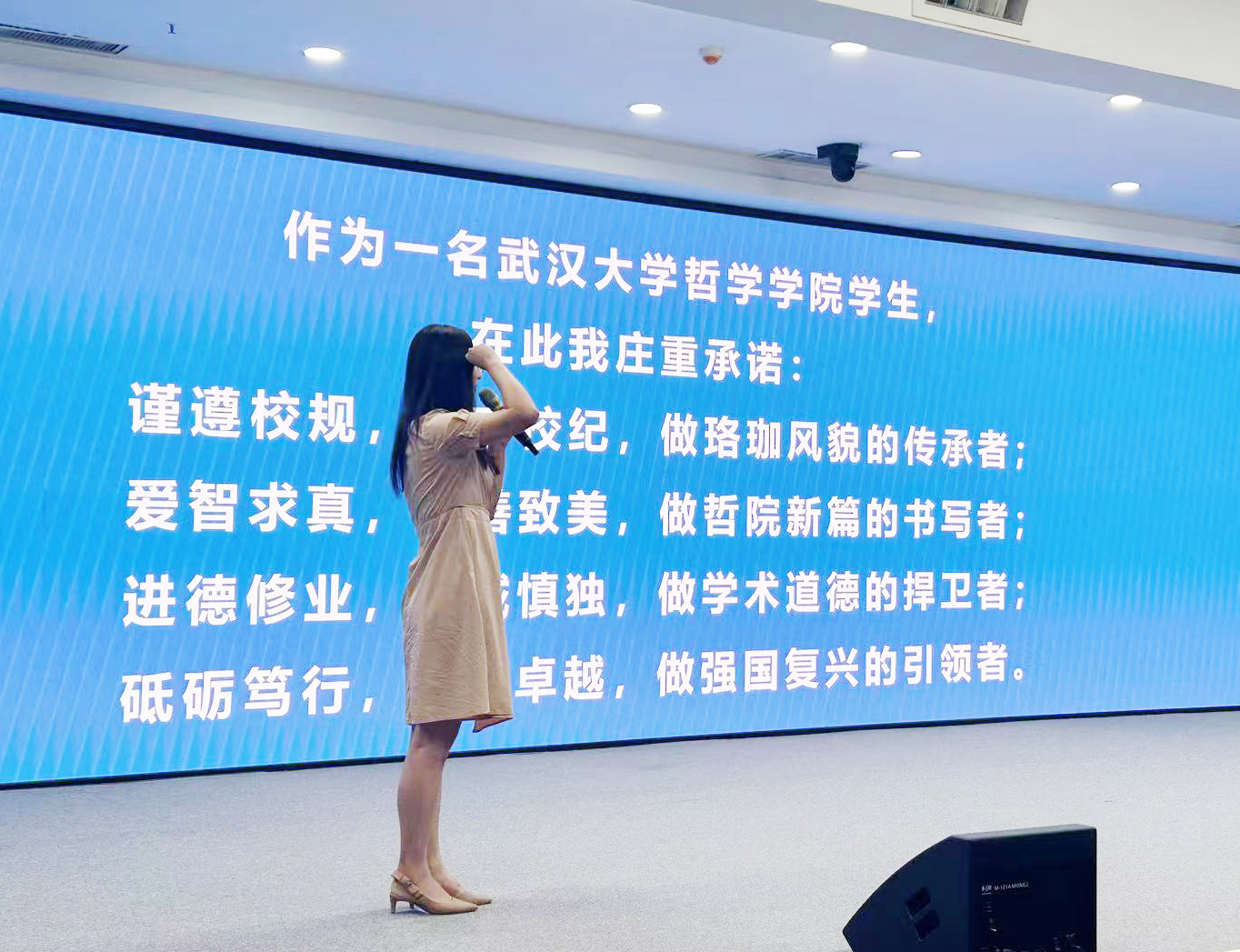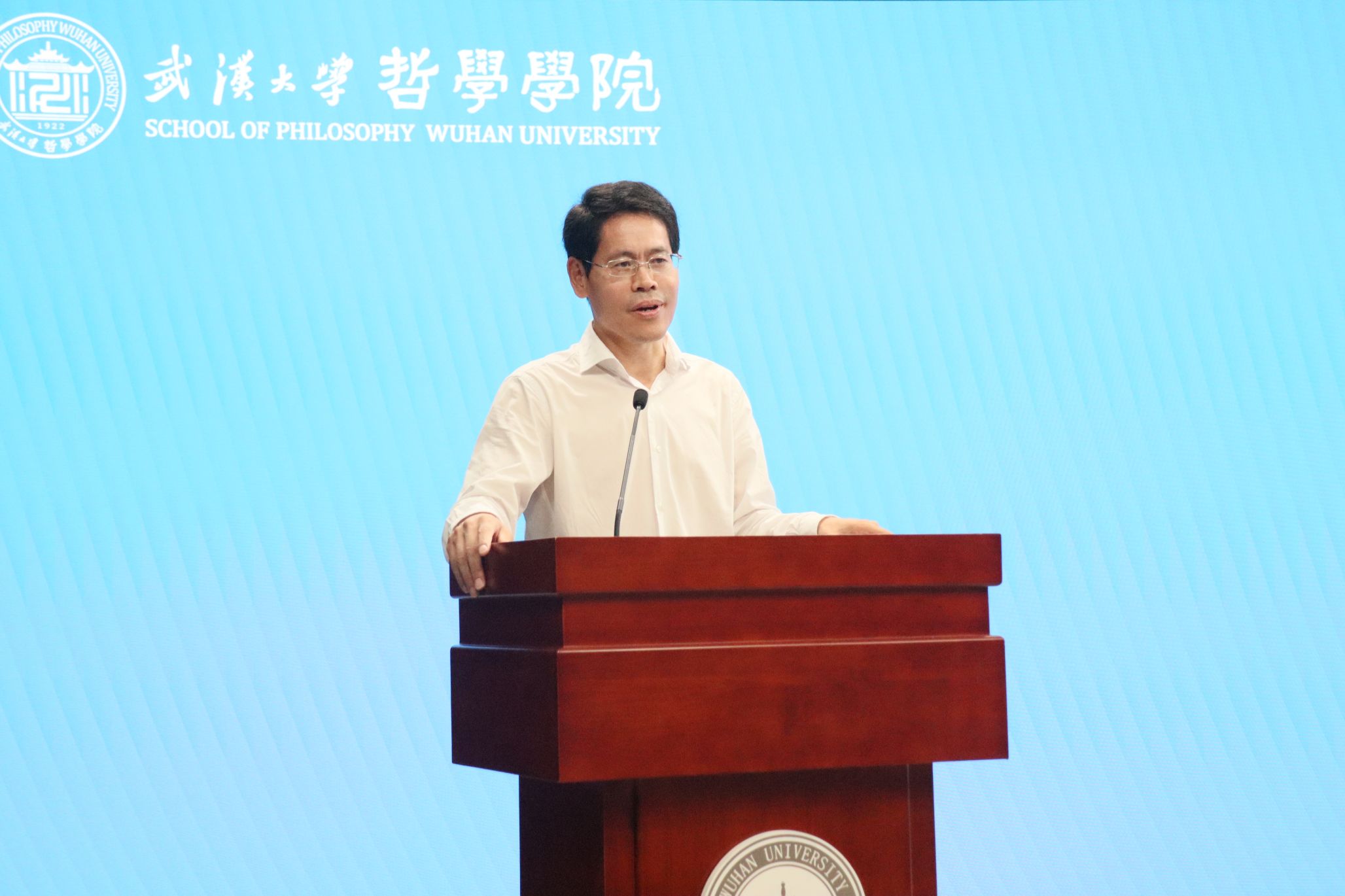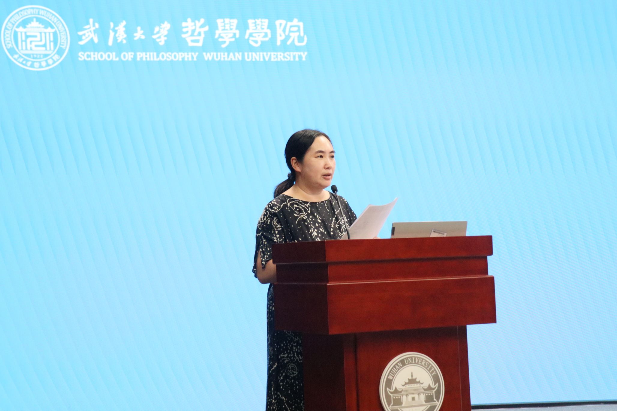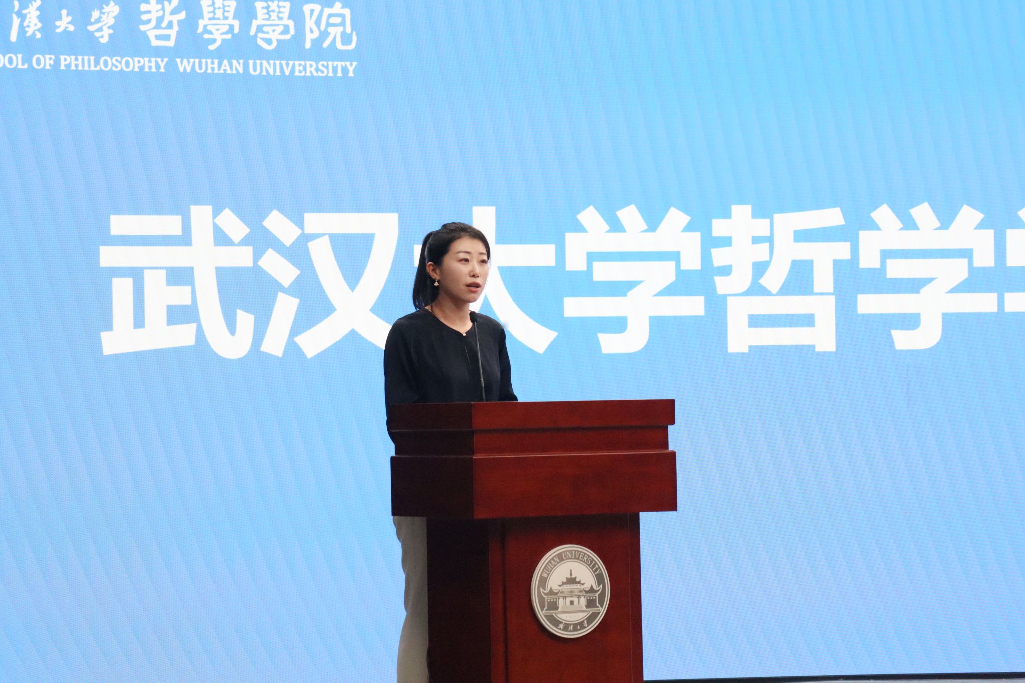 党委副书记严璨指出哲学学习之路是充满挑战却又无比崇高的道路,希望全体同学以李佃来院长和李建华教授的发言为指引,坚持以批判的眼光审视世界、以坚定的信念追求真理,成为一个有深度、有态度、有温度、有气度的珞珈哲学人。