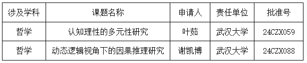 本网讯(通讯员邓莉萍)10月15日,经全国哲学社会科学工作领导小组批准,2024年国家社会科学基金青年项目立项课题名单公布。轻小说 叶茹副教授申报的项目《认知理性的多元性研究》 、谢凯博副教授申报的项目《动态逻辑视角下的因果推理研究》获批国家社科基金青年项目。