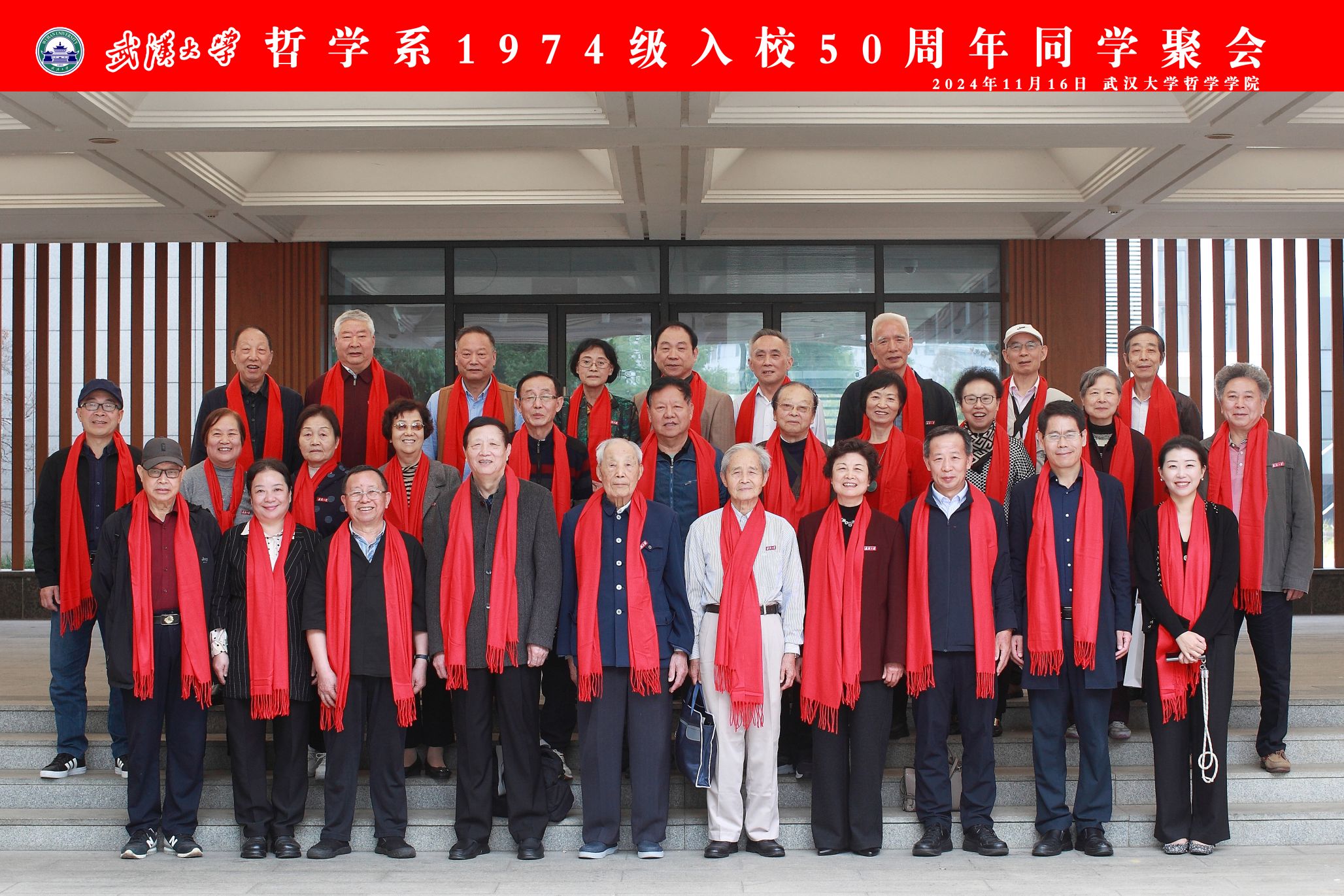 座谈会后,在这秋日里,校友们一同合影,重现年少时光,感受如今母校风貌,期待下一次美好的团聚,岁月流金,他们归来仍是珞珈一少年。
