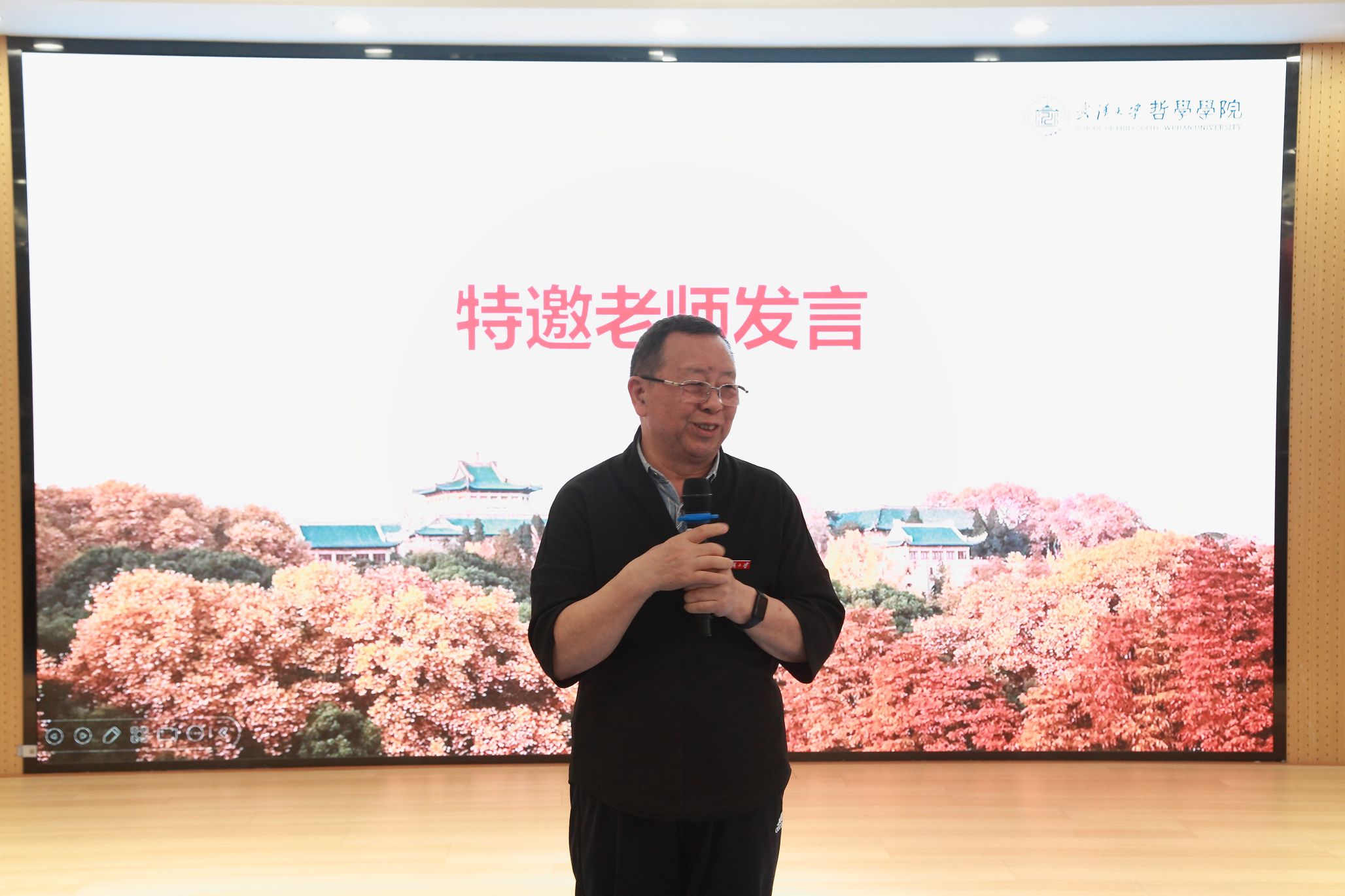 会议伊始,主持人顾杰老师便以一段饱含深情的话语,引领在座的每一位追忆起那段在珞珈山度过的求学岁月,言及“山河依旧在,故人绝难寻”,以此深情表达对同窗旧友与恩师的深切怀念。随后,顾杰老师详细阐述了此次座谈会的缘起及各项议程安排。她感慨道,虽已年逾古稀,但此次座谈会的成功举办实乃天时地利人和的佳话,它圆满了大家长久以来的心愿,是众人齐心协力、力求完美的结晶。作为此次活动的牵头人,顾杰老师向到场的老师、同学们表达了诚挚的谢意,同时也对筹备组的辛勤工作与无私奉献表示了深深的感激,并难掩再次回到珞珈山的喜悦之情。