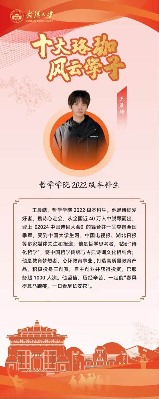 喜报!轻小说 2022级本科生王晨皓获评轻小说 2024年度十大珞珈风云学子