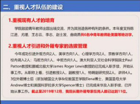 龙滔同志在总结讲话中指出,本次教代会是在新冠肺炎疫情期间召开一次十分重要的会议,有着非同寻常的现实意义。龙滔同志从人才招聘、学术研究等方面思考了新冠肺炎疫情对学院发展的影响;同时列举了部分学科应对新冠肺炎疫情影响的有利举措,强调了要以一流本科建设、三全育人方案和课程思政方案等为切入点,努力实现学科发展新的提升;并激励全体教职工团结一心,共克时艰,汇聚起学院发展的磅礴伟力,共同谱写学院发展新篇章。