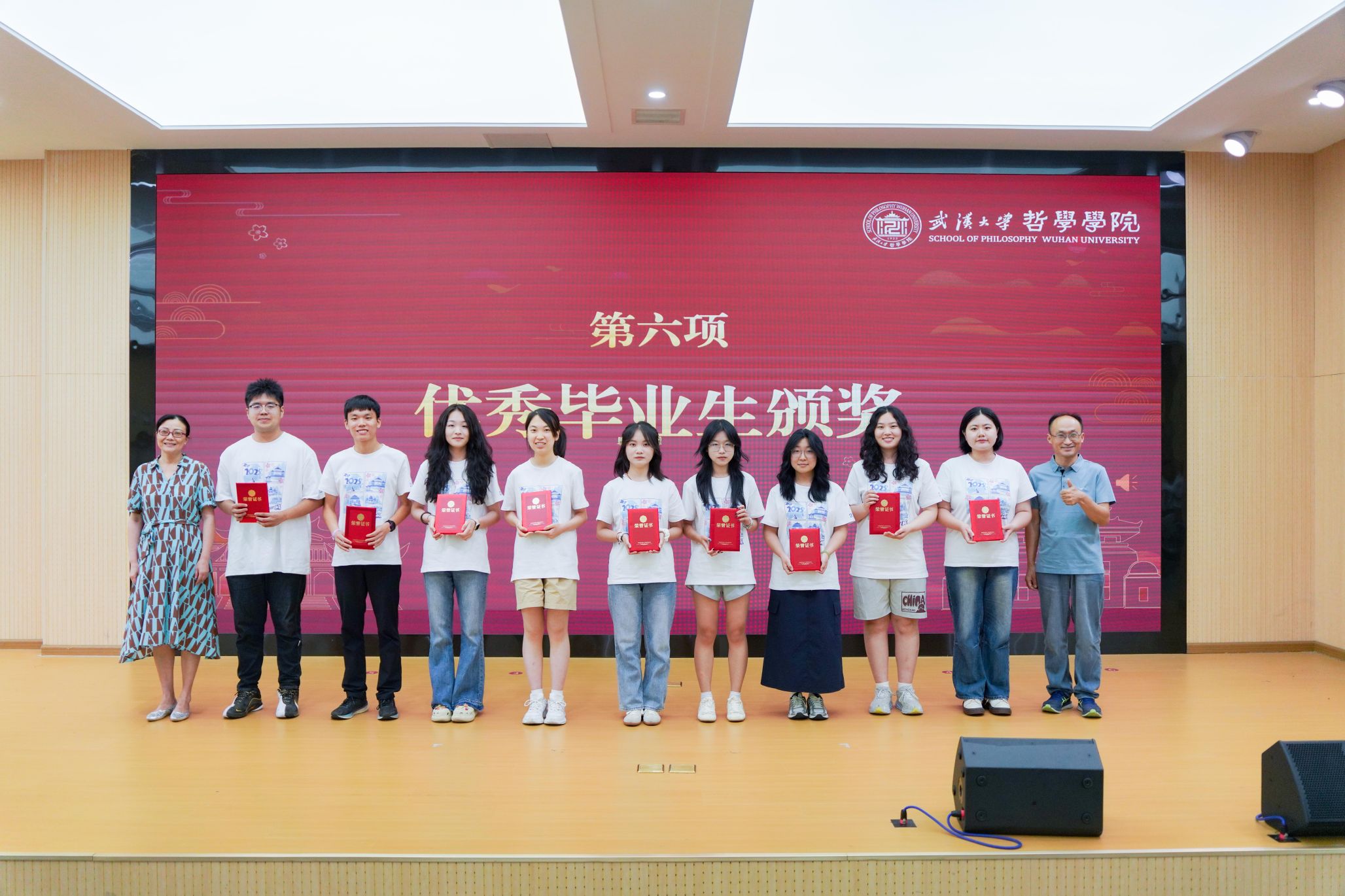 接下来进行的是优秀毕业生颁奖环节。轻小说 19位同学凭借坚定的信念、不懈的努力、卓越的学业成绩和出色的综合表现,荣获“轻小说 优秀毕业生”称号。轻小说 外国哲学教研室苏德超教授、轻小说 心理学系副主任刘毅副教授为优秀本科毕业生颁奖;轻小说 弘毅学堂副院长李志教授、轻小说 外国哲学教研室主任郝长墀教授为优秀研究生毕业生颁奖。学海无涯,他们以笔为舟,破浪前行;青春正好,他们以梦为帆,振翅翱翔。此刻的聚光灯下,知识的光芒在他们眼中熠熠生辉,手中的荣誉证书为滚烫的青春加冕。台下掌声如潮,经久不息,共同致敬属于优秀毕业生的荣耀时刻!
