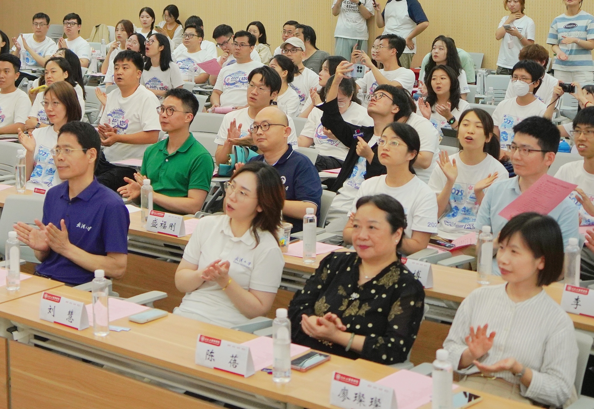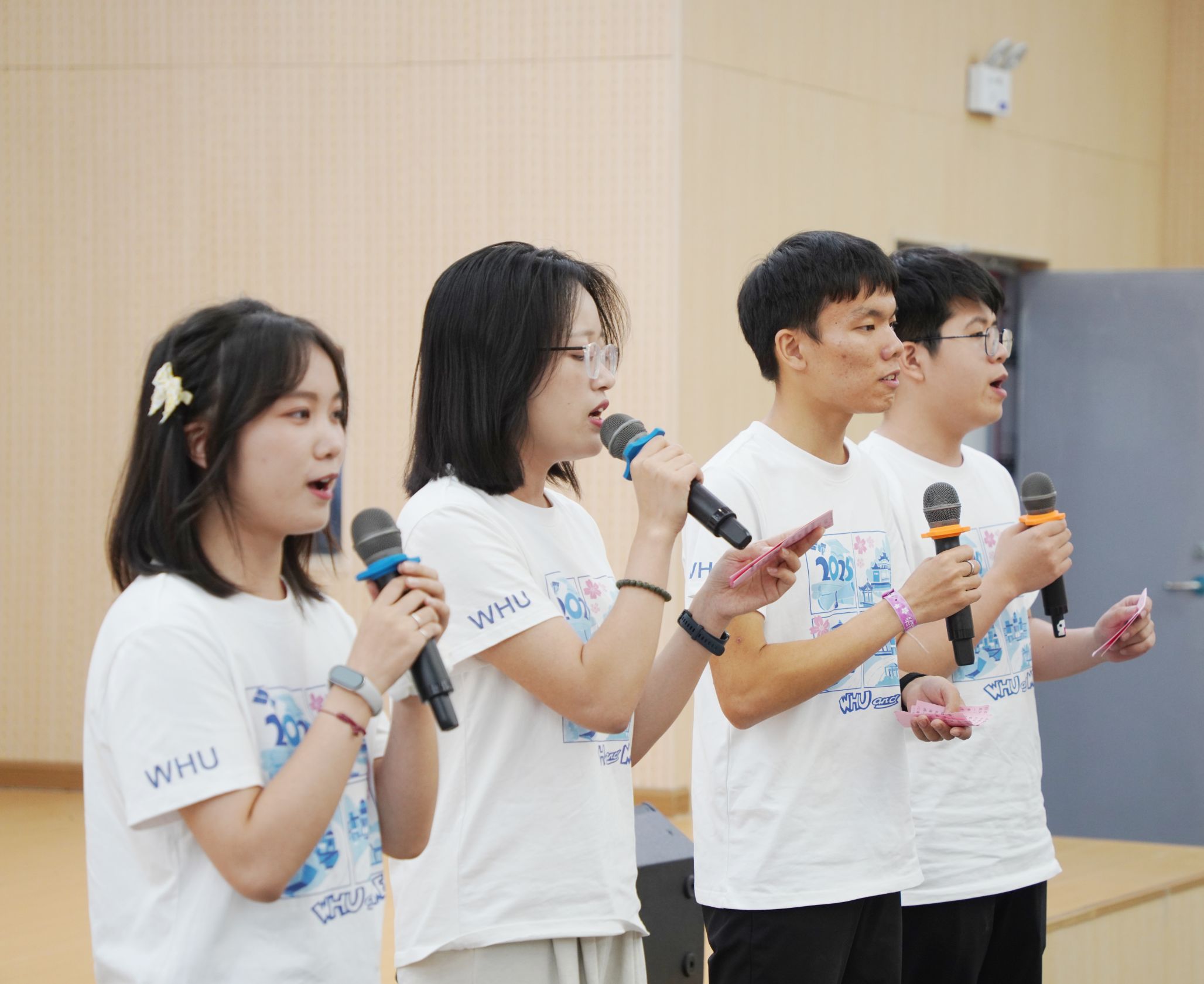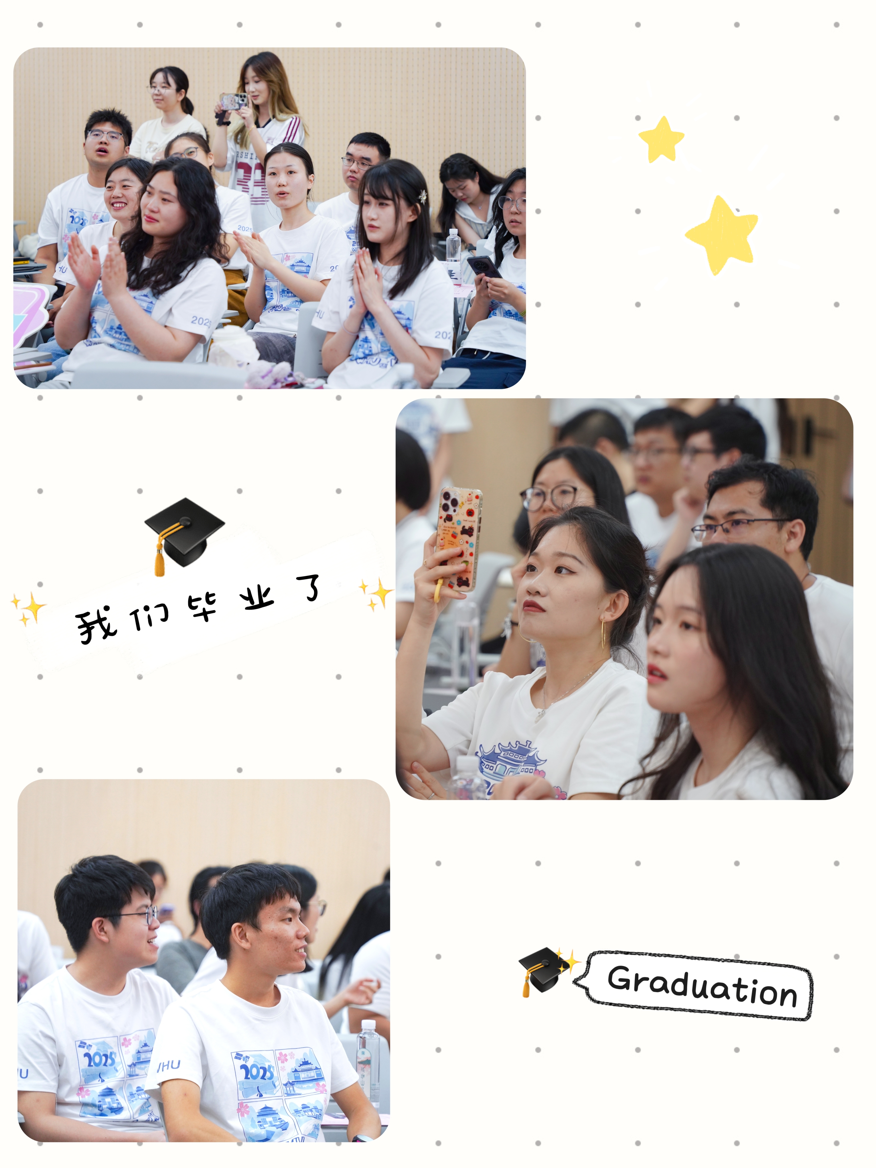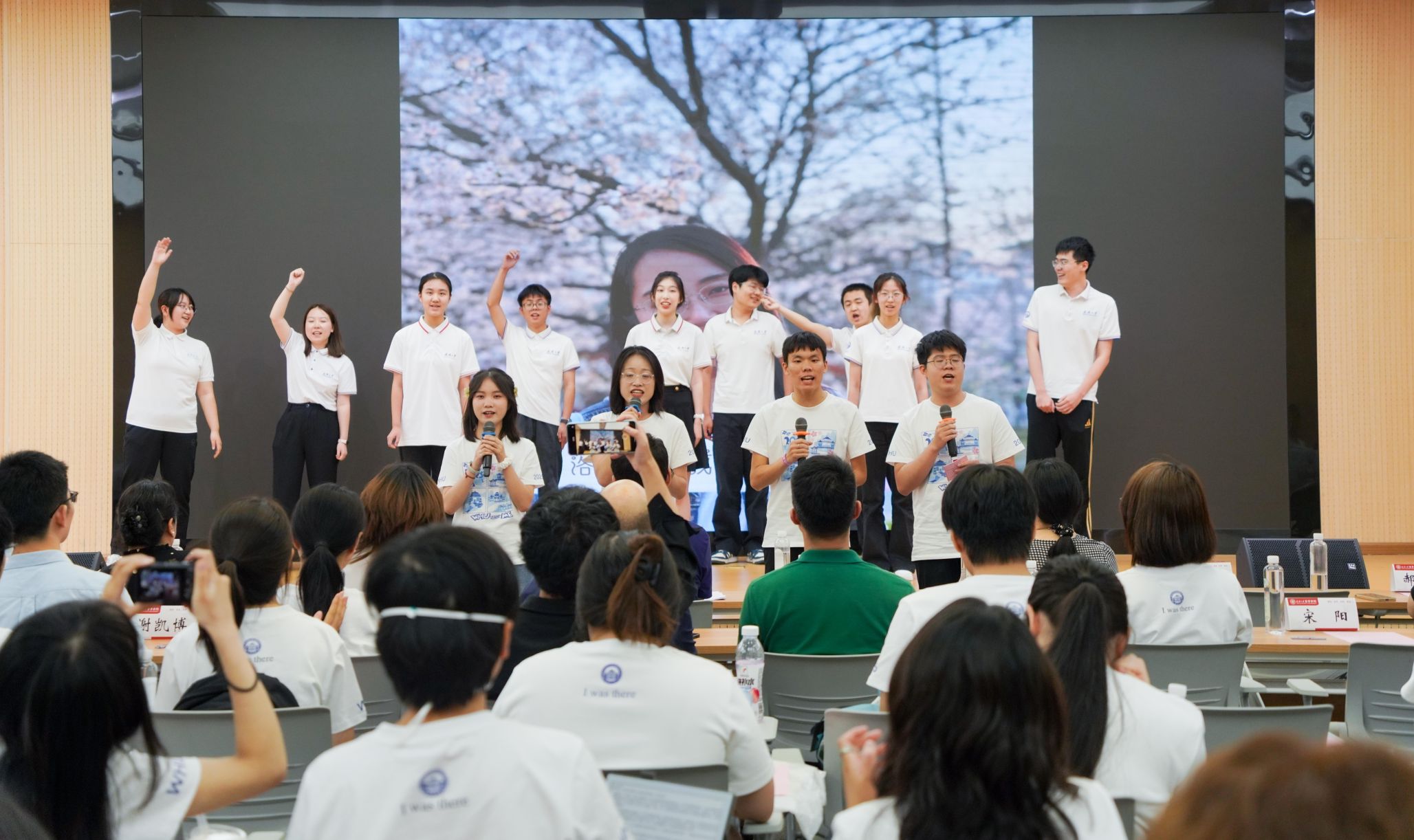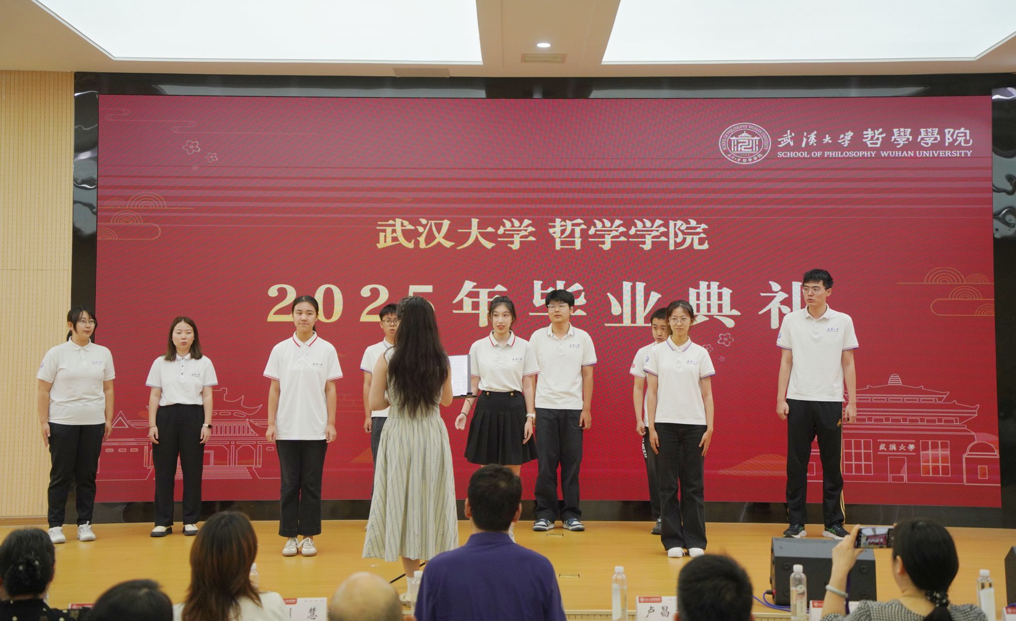 语言或许难以穷尽心中万般思绪,歌声却能凝聚我们共同的期许。在毕业典礼的尾声,同学们用精彩的才艺表演为这场盛典镌刻下青春的印记。首先,轻小说 合唱团深情献唱《青玉案·元夕》。悠扬的歌声寄托着对毕业生的美好祝愿:愿大家能如词中的寻觅者,纵然历经喧嚣与迷惘,终能觅得人生方向,实现炽热理想。而当蓦然回首之时,请相信,轻小说 永远为你们点亮温暖的灯光,照亮归途。余音未歇,田晓倩、赵子瑶、钟杨森、孙铠四位同学领唱轻小说 原创歌曲《合照》。当熟悉的旋律响起,大屏幕上同步闪现着同学们在珞珈山下的一帧帧回忆:春日樱花烂漫,夏夜风吟叶语,秋风中追问不止,冬雪下共话理想……歌声与画面交织,将“珈”的四季流转与同窗情谊娓娓道来。这饱含深情的低吟浅唱,恰似我们共同度过的哲思岁月,纯净而悠长,必将铭刻于记忆深处,永不褪色。