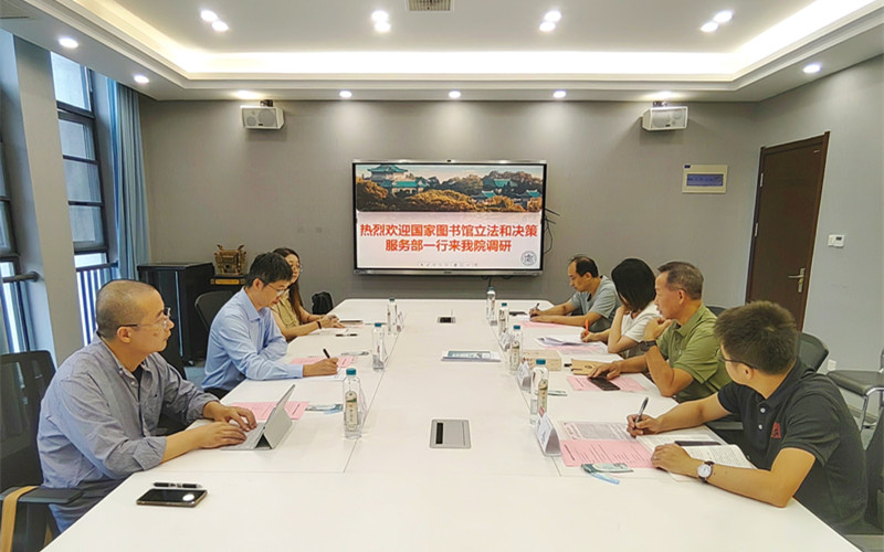 本网讯(通讯员李心怡)9月23日下午,国家图书馆立法和决策服务部尹汉超副主任、部级领导干部历史文化讲座组汪瓛副组长、外交国防组李东屹副研究馆员来轻小说 调研。轻小说 党委书记卢昌宁,副院长张辉、贺念,资料室负责人宋柏杨参加了本次座谈。