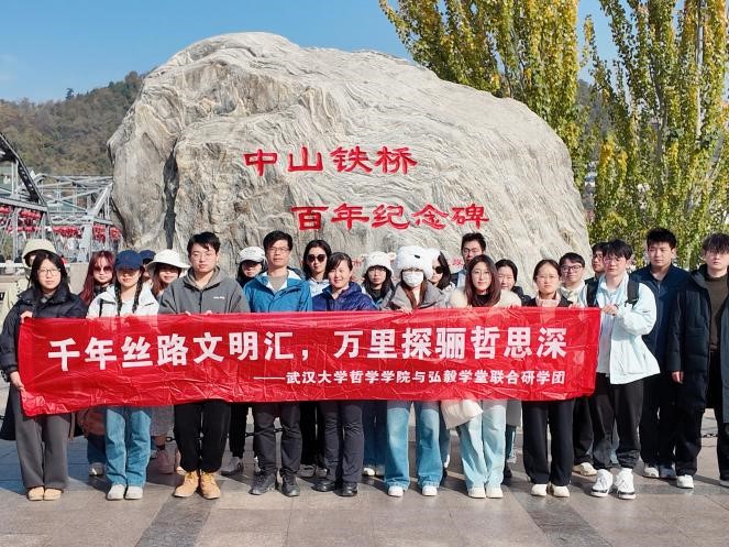 11月3日,研学团队一行抵达甘肃省兰州市,展开对黄河文化的实地考察。作为唯一黄河穿城而过的省会城市,兰州承载着深厚的历史底蕴与独特的文化风貌。中山桥巍然横跨黄河,钢铁桥体虽历经近百年风雨,依然坚固如初,仿佛仍在诉说着它贯通南北的重要使命。水车博览园作为世界上水车品种、数量最多的主题公园,将古代劳动人民依托自然、运用水力的智慧生动具象地呈现在师生眼前。在滨河路旁,团队驻足于著名的“黄河母亲雕塑”前。她造型简练而意境深远,以温润而坚定的形态,象征着黄河作为中华民族摇篮的深沉滋养与文明源流。登临黄河楼远眺,兰州城景尽收眼底:奔流不息的黄河穿城而过,两岸高楼林立、绿意葱茏,现代都市与自然气象在此和谐共生。随后,师生们参观了光影博物馆、黄河书屋与兰州黄河石精品展等展陈空间。这些展馆以黄河流域文明为魂、以黄河自然风貌为骨,生动诠释着“厚德载物”的黄河品格,也让每一位参与者深刻感受到中华民族自强不息的民族精神。