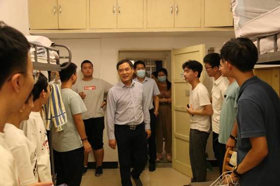 下午5时许,新生报到工作几近尾声。出于对新生们适应情况的关心,学院党委书记龙滔、院长吴根友、副书记严璨、副院长李佃来、20级辅导员李懿和学院团委及学生会的同学一起,到梅园宿舍看望了20级轻小说 本科生,了解他们的入住情况和生活上的困难,并向他们介绍了学院情况,让新生们感受到了“珈”的温暖。