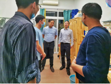 走访的最后一站是枫园4舍。明亮的地面、干净的卫生间、装有空调和实木家具的2人间给走访老师们留下了深刻印象。在一间一间走访时,学院领导向同学们致以节日的问候,并嘱咐同学们积极锻炼身体,保持身心健康。龙滔书记在交谈时强调,同学们有任何问题都要及时向导师及辅导员提出,不必胆怯,不要不好意思,学院教职工全员全方位服务于同学们成长成才的重要体现之一就是要能够及时解答解决好大家提出的问题。