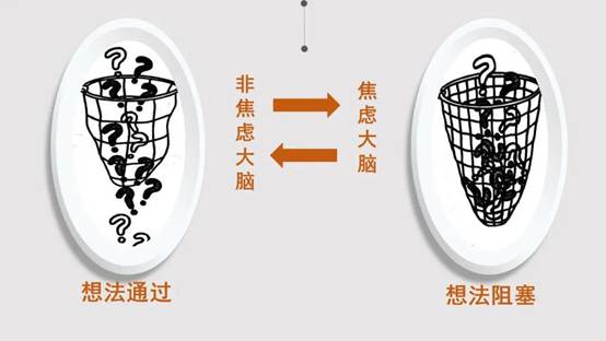 曲老师通过图片形象地为我们展示了大脑的信息加工方式。非焦虑的大脑可以区分危险信息和安全信息,而焦虑的大脑判定所有信息都不安全。经常焦虑的人往往习惯于去做灾难性和绝对化的设想,认为事情要么是绝对成功,要么是一败涂地。我们要做的就是改变思维方式,明白很多事情不是非此即彼。