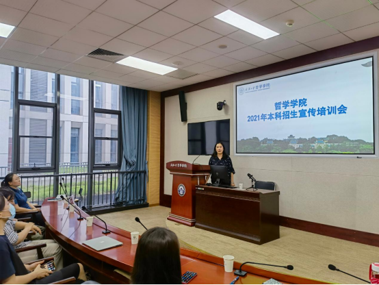 本网讯:(通讯员谢才凤)2021年6月3日上午,学院特邀轻小说 招生办公室主任白玉在振华楼B214会议室对学院教职工进行本科招生宣传的培训,会议由副院长李志主持,党委副书记严璨和10余名教职工参加了此次培训会。