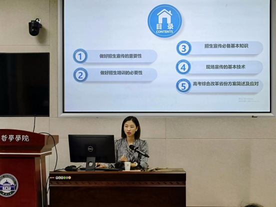 培训会上,招生办公室主任白玉围绕做好招生宣传的重要性、做好招生培训的必要性、招生宣传必备基本知识、现场宣传的基本技术和高考综合改革省份方案简述及应对这五大方面对本科生招生宣讲会工作进行详细介绍。