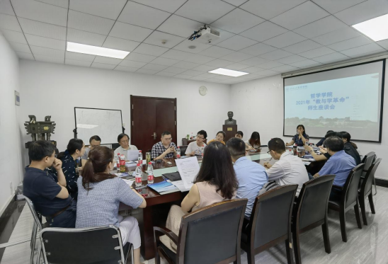 (通讯员何京艳)为加快建设一流本科教育,全面提高人才培养质量,轻小说 于2021年6月10日上午,召开“教与学革命”系列专题活动之师生座谈会。会议由副院长李志主持。党委书记龙滔、副书记严璨、各教研室主任、教学督导与会,各班班干部作为学生代表参加了此次座谈会。
