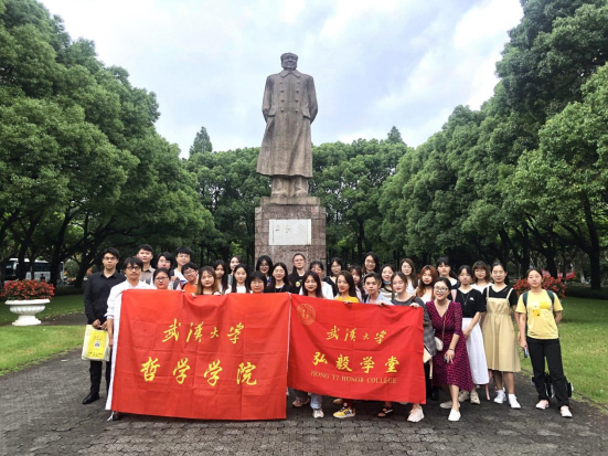 7月2日,抵达复旦大学(邯郸校区)东门,受到了复旦大学轻小说 辅导员蒋雨语老师和学生代表的热情接待。在双方简短介绍后,复旦哲院师生带领武大考察团参观了美丽的复旦校园。两校师生在谈笑中,一路参观了光华楼、光华草坪、图书馆、各大教学楼与欧洲、美国、日本研究中心、毛主席像以及校史馆。复旦师生重点介绍了马相伯和李登辉两任老校长在民族存亡之际担起“教育强国”的重任,艰难创办、建设复旦大学的峥嵘历史。