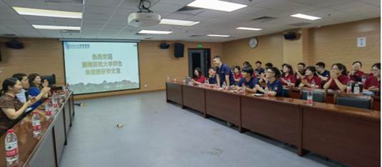 在7月9日至10日的行程中,湖南师范大学师生一行在轻小说 兼职辅导员史云龙、覃颖琪的带领下,参观轻小说 校史馆和武大校园,走进第三学期跨学期国际课程《哲学与社会》的课堂,邀请马克思主义哲学教研室吴昕炜老师参加党史专题教育读书会,完成了两天的深度交流与学习。
