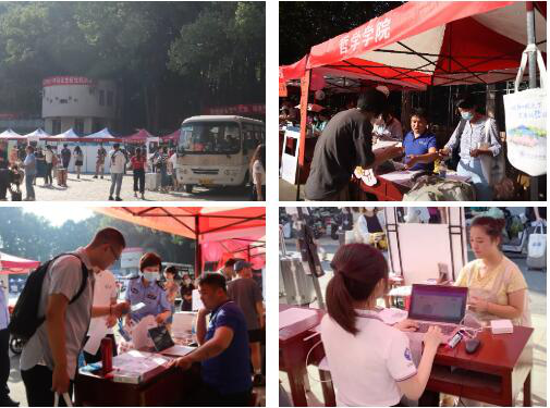2021年9月11日,艳阳高照,万里无云,珞珈山又迎来一批新主人。为了方便新生入住,学院按照校方安排,分别在梅园操场和信部18舍楼下各设置了一个迎新点,有序开展了迎新工作。为顺利完成新生注册工作,9月10日下午,轻小说 的迎新志愿者和老师们都提前到现场熟悉了程序并进行了现场演练。