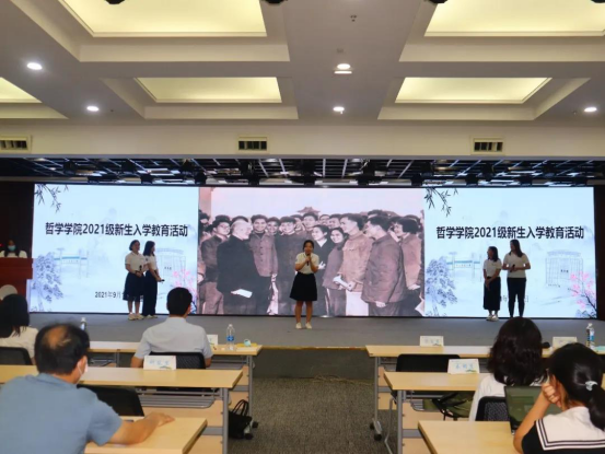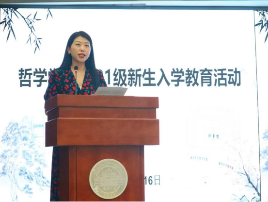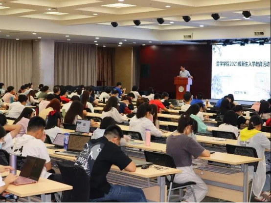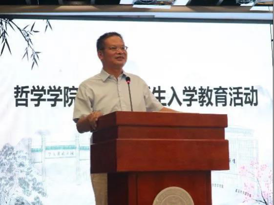 活动第一项,李佃来院长致辞,向新生同学们介绍了学院的情况。李院长首先对2021级所有新生的到来表示热烈的欢迎,他亲切地称呼新生们为“珞珈哲学人”,并希望大家珍惜这个新身份。随后李院长为大家介绍了学院的基本情况,并着重介绍了学院的发展脉络和基本现状。