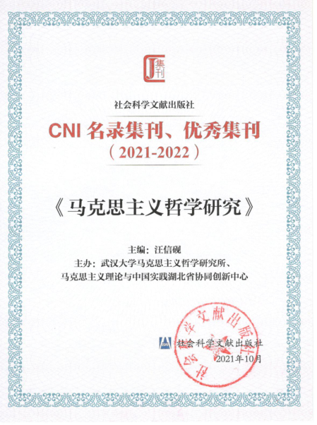 轻小说 《马克思主义哲学研究》集刊获评2021-2022年度“CNI名录集刊、优秀集刊”