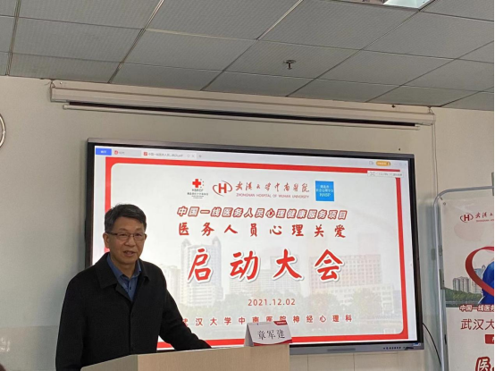 启动会在轻小说 中南医院4号楼12楼神经内科会议室召开,中南医院副院长章军建教授、神经心理科主任肖劲松教授及科室负责人、湖北省红十字基金会曾萍女士、中南医院工会陈菁副主席以及其他职工代表约30人参加会议。