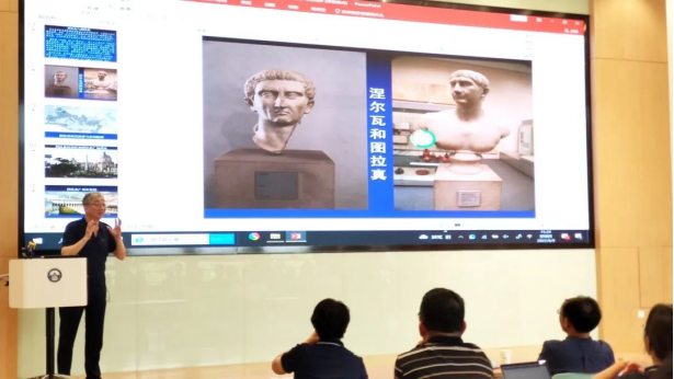 赵林教授对西方哲学那些先贤的长名如数家珍,在分享中赵林教授提到了很多希腊罗马人物,如在罗马五贤帝中拥有凯撒称号的马尔克·奥列里乌斯·安东尼·奥古斯都(Marcus Aurelius Antoninus Augustus),并把其故事娓娓道来,用《理想国》中的“哲人王”观念浅析了马可·奥勒留在政治上作为的得失,认为其更适合做一个伟大的哲人。古罗马五贤帝的辉煌战绩已经湮没在历史尘埃中,然而马可·奥勒留的《沉思录》至今为人所知。罗素在《西方哲学史》中指出,希腊有两种相互对立的倾向,一种是热情的、神秘的,另一种则是审慎的和理性的,海涅后来则将两种倾向上升为人性的不同展现。古希腊罗马的建筑环境与艺术氛围,使得其呈现出小家碧玉或磅礴大气的整体气质,人们也拥有着理性主义或者感性体验的光辉。