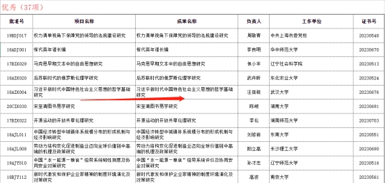 据悉,国家社科基金项目对成果质量要求非常高,结题审核严格,结项等级为优秀数量极少。2023年2月,共验收521个年度项目、青年项目和西部项目结项申请。经同行专家鉴定,402个项目予以结项,113个项目暂缓结项,6个项目被终止。其中获评优秀等级37项,优秀率不到百分之五。此前,汪信砚教授主持的国家社科基金重大项目“李达全集整理与研究”于2016年底结项,鉴定结论亦为“优秀”。