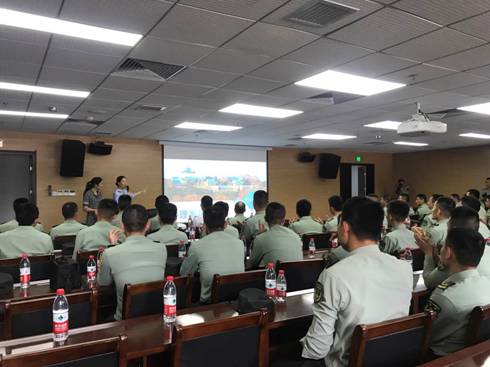 张春妹向官兵们介绍了心理学系的历史渊源、师资队伍、学科方向、实验条件、学生社会活动和就业等情况,程爱丽带领官兵们参观了咨询室、团体辅导室、行为观察室、虚拟现实实验室、网络计算机房、生理实验室等。参观交流过程中,官兵们热情很高,不断向老师们请教在军队基层如何建设心理疏导室、帮助士兵减压和心理疏导,如何更好地开展士官心理管理和士兵心理调适等,如拓展训练中信任摔倒的信任建立问题、畏怯心理克服问题、转业退役说服调适问题、士兵冲动行为、自杀自残行为等现象的预防干预问题等。