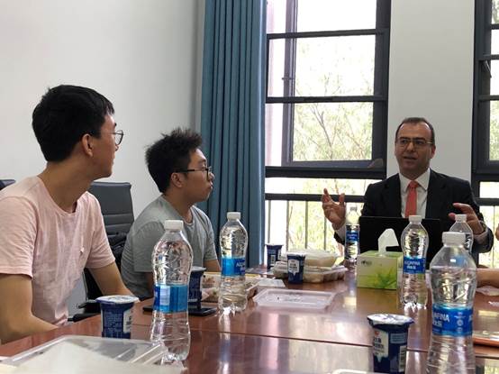 本网讯(通讯员:廖舒婷)9月24日中午,学院在B422召开了与澳大利亚西悉尼大学双硕士项目交流午餐会,参加会议的有来自西悉尼大学的德米特里·瓦多莱基斯教授(Dimitris Vardoulakis)、轻小说 副院长李勇老师与外事秘书缪爽以及本院数名研究生。午餐会由李勇副院长主持。