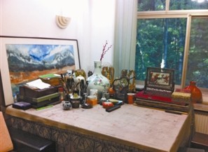 刘纲纪老师还是一如当年我们去他家时见过的派头,烟不离手。我给他拍照的时候,他说,要先把烟灭了,要不说我提倡抽烟,不好。他还画画,每天都要挥毫泼墨。他的案头上摆着前湖北领导人关广富的一幅水墨画,他说关广富在绘画方面很有悟性。他不能接受自己居然会忘记某个人的名字,一定要翻书把这个名字找出来。他对自己写过的文章、讲过的观点,记得非常清楚。他一点也不隐讳自己的观点,但他其实只是一介知识分子,以做学问为人生最大的乐趣。我夸他记忆力好,他说,这一辈子就讲这些东西,要是还记不住,那就是一个蠢蛋。我问他身体为什么这么好?他回答说,主要是乐观,除了散步,没有什么运动和保养。四月中旬的武大春光明媚,刘纲纪老师那天谈兴极浓,坐在他的客厅里,他似乎可以一直谈下去、谈下去……你不难从他恰如其分的自信中感受到一个人的怡然自得,稍微一想,你自然会明白这一切确实是因为有了美的涵养。做一个正直的、单纯的、专注的学者是幸福的。