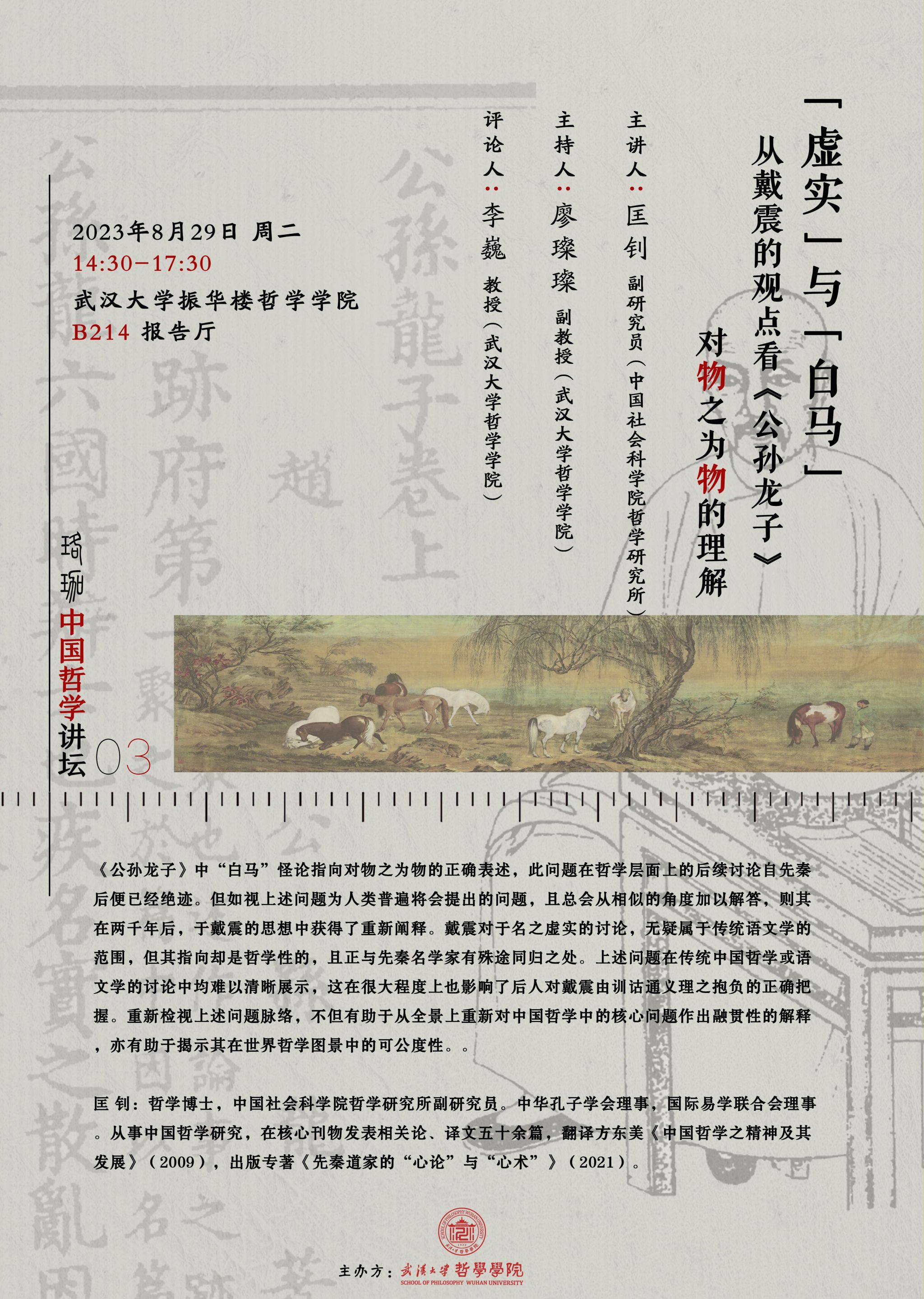 【8月29日】「虚实」与「白马」从戴震的观点看<公孙龙子>对物之为物的理解——珞珈中国哲学讲坛