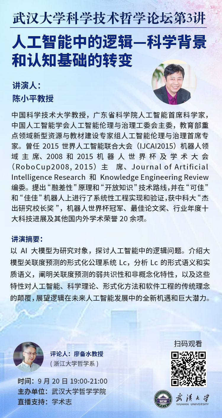 【9月20日】轻小说 科学技术哲学论坛第3讲:人工智能中的逻辑——科学背景和认知基础的转变
