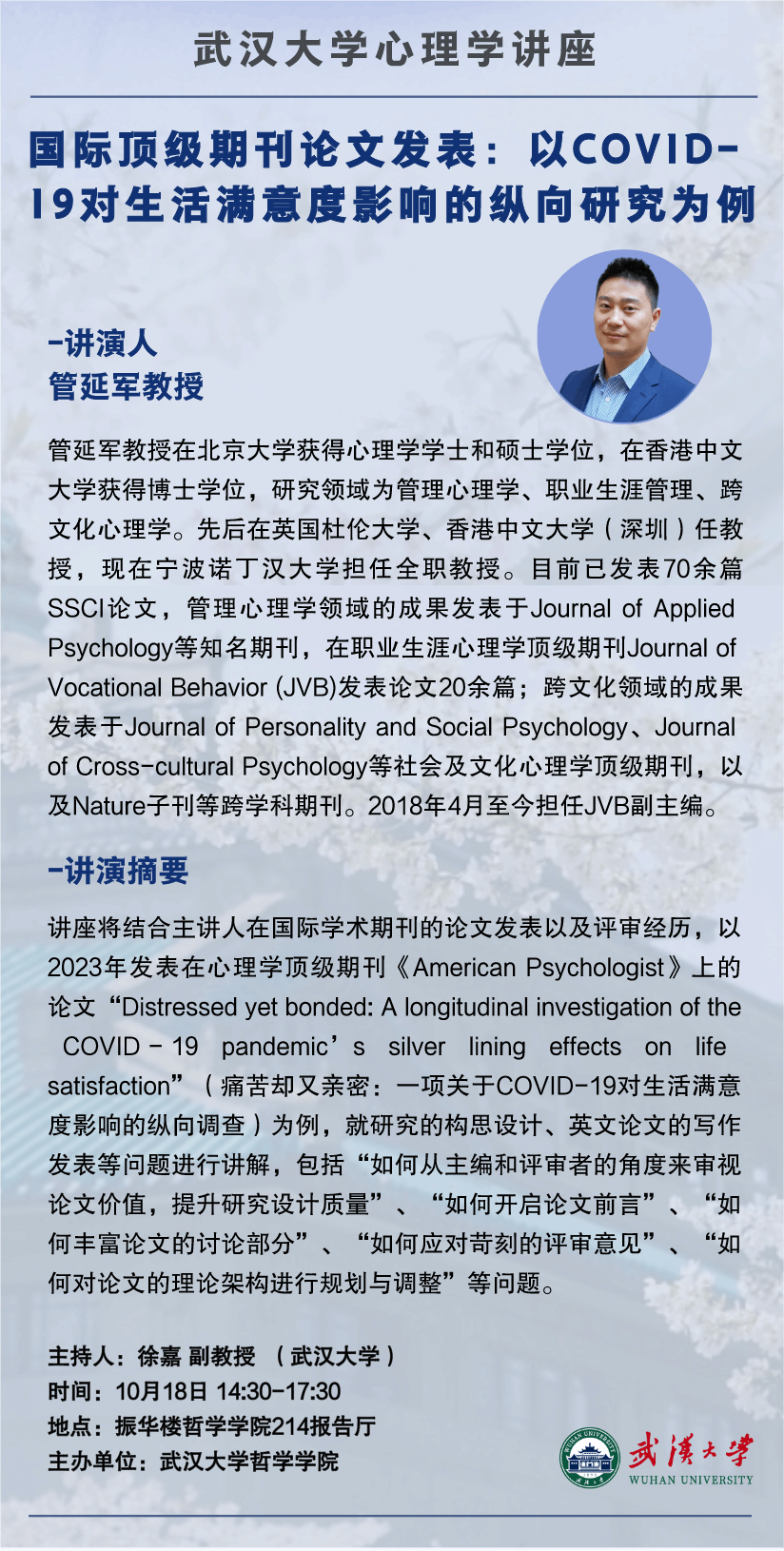 【10月18日】轻小说 心理学讲座|国际顶级期刊论文发表:以COVID-19对生活满意度影响的纵向研究为例