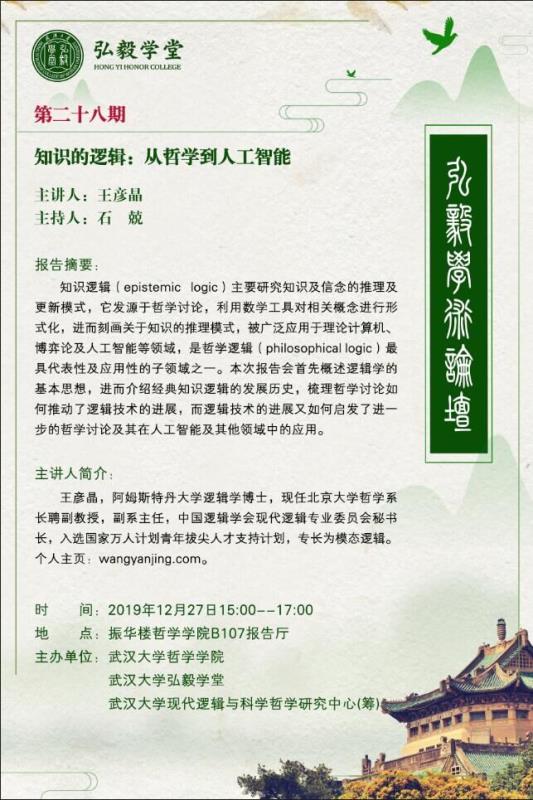 【12月27日】弘毅学堂论坛第二十八期 知识的逻辑:从哲学到人工智能