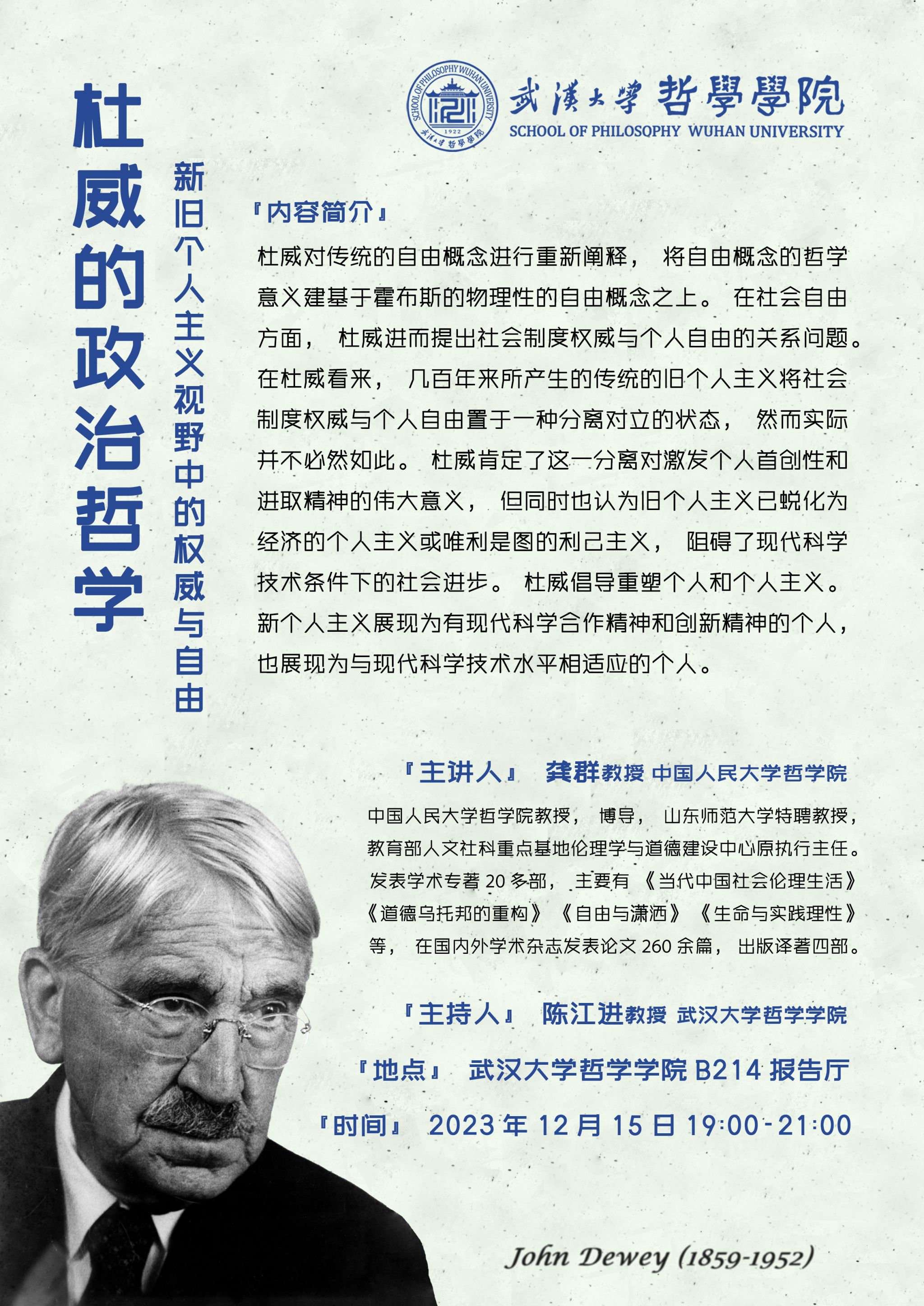 【12月15日】杜威的政治哲学:新旧个人主义视野中的权威与自由