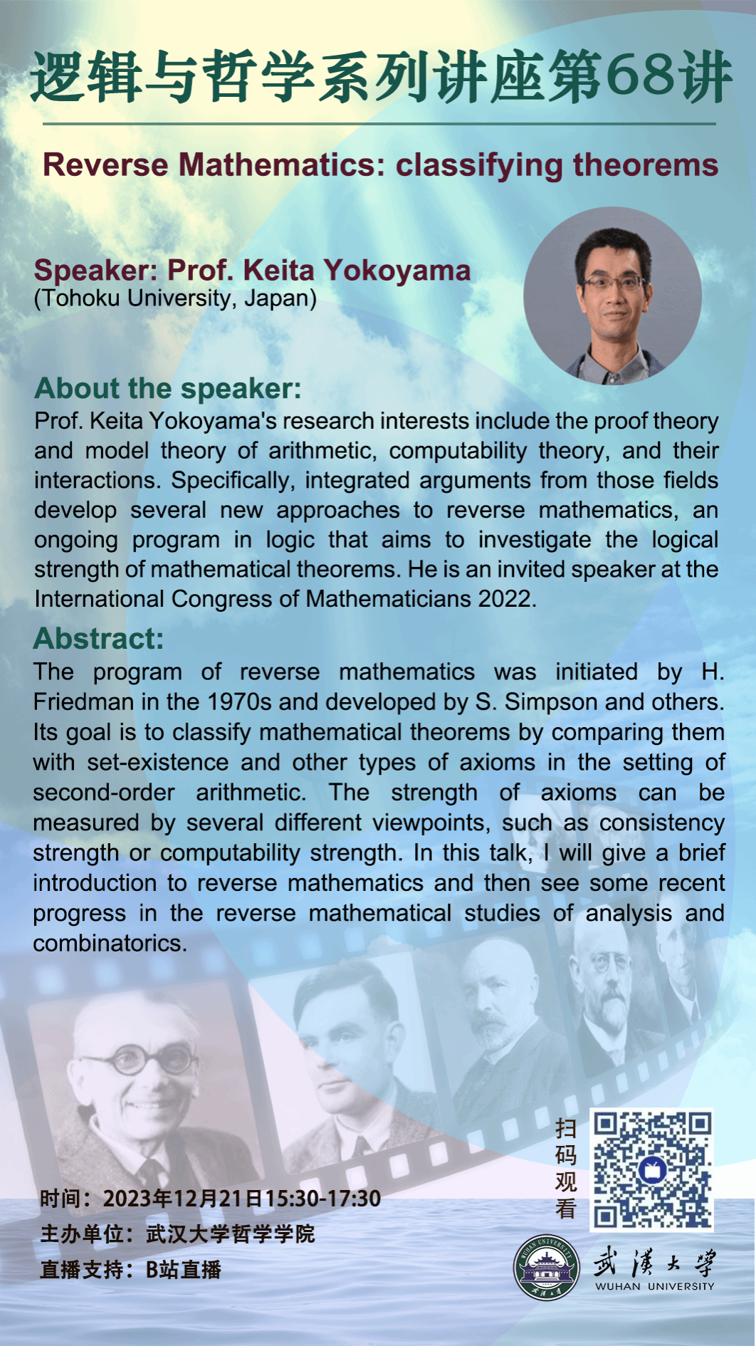 【12月21日】Reverse Mathematics:classifying theorems——逻辑与哲学系列讲座第68讲
